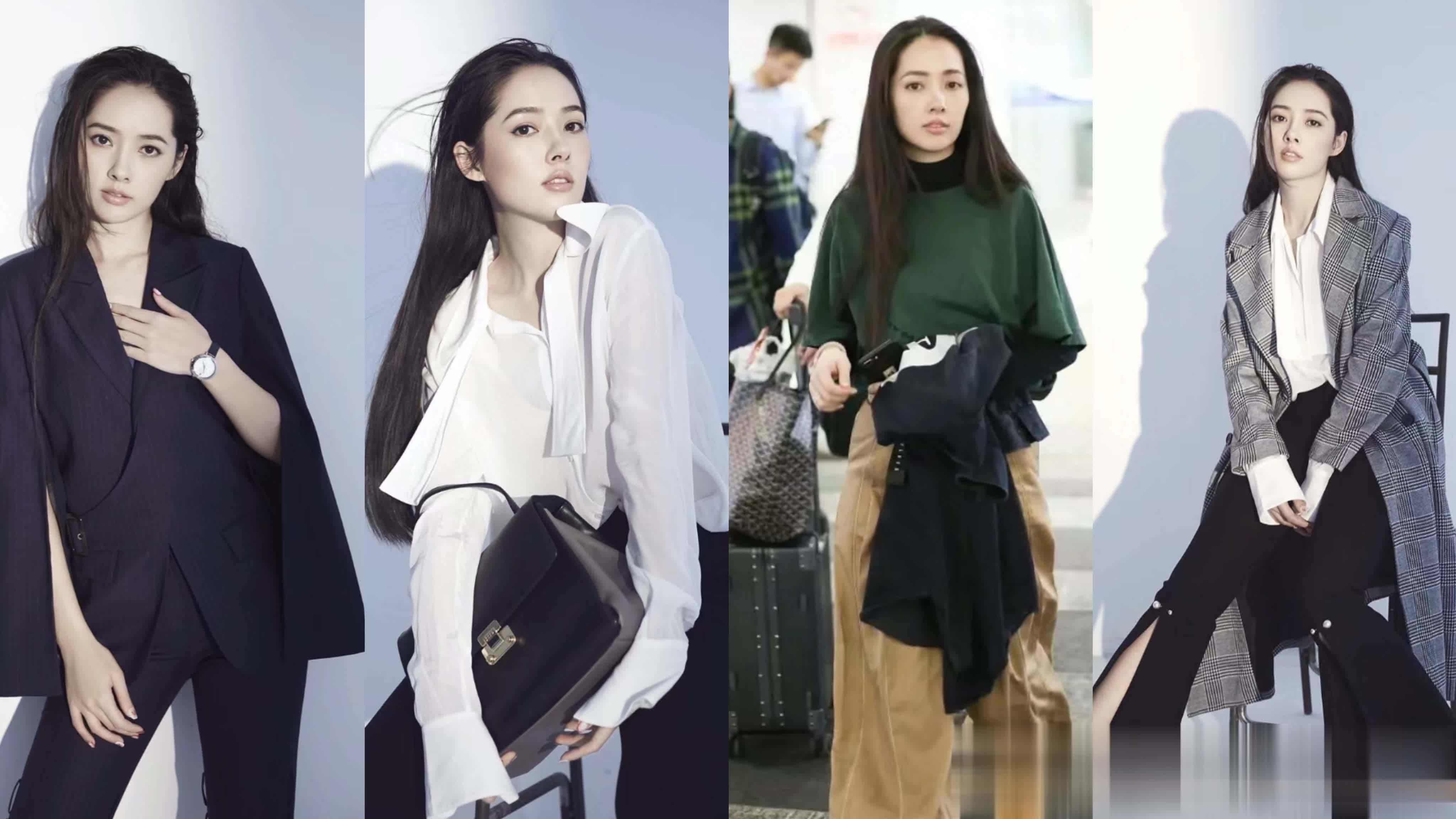 比如,一条宽松慵懒长裙,修身上衣+牛仔阔腿裤,随意的长袖T恤配一条修身长裤,这都是郭碧婷非常喜爱的穿搭方式。